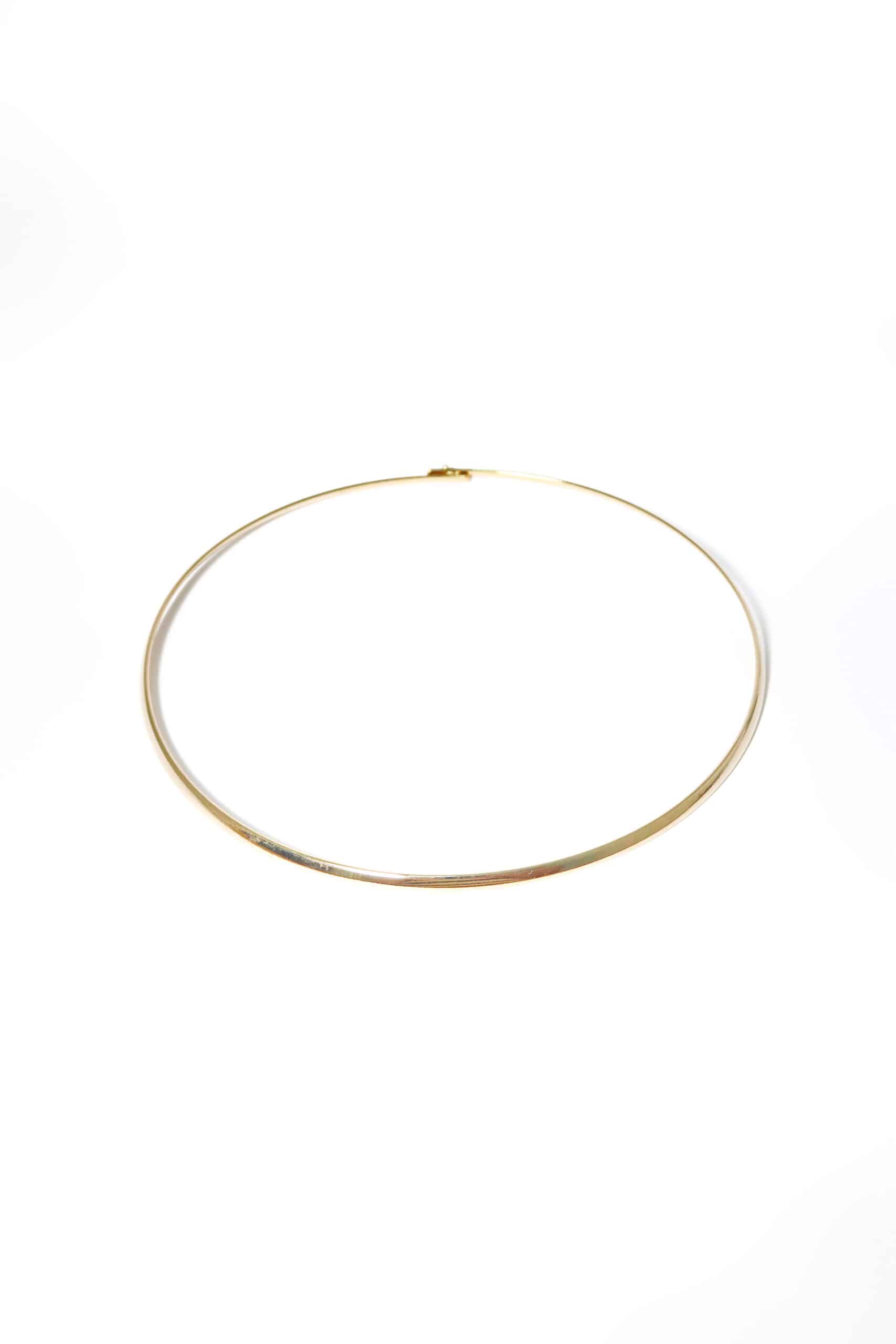 Base metálica em banho de ouro com acabamento luminoso. É leve, confortável e resistente; design pensado para encaixar pingentes curtos e longos com total estabilidade.
