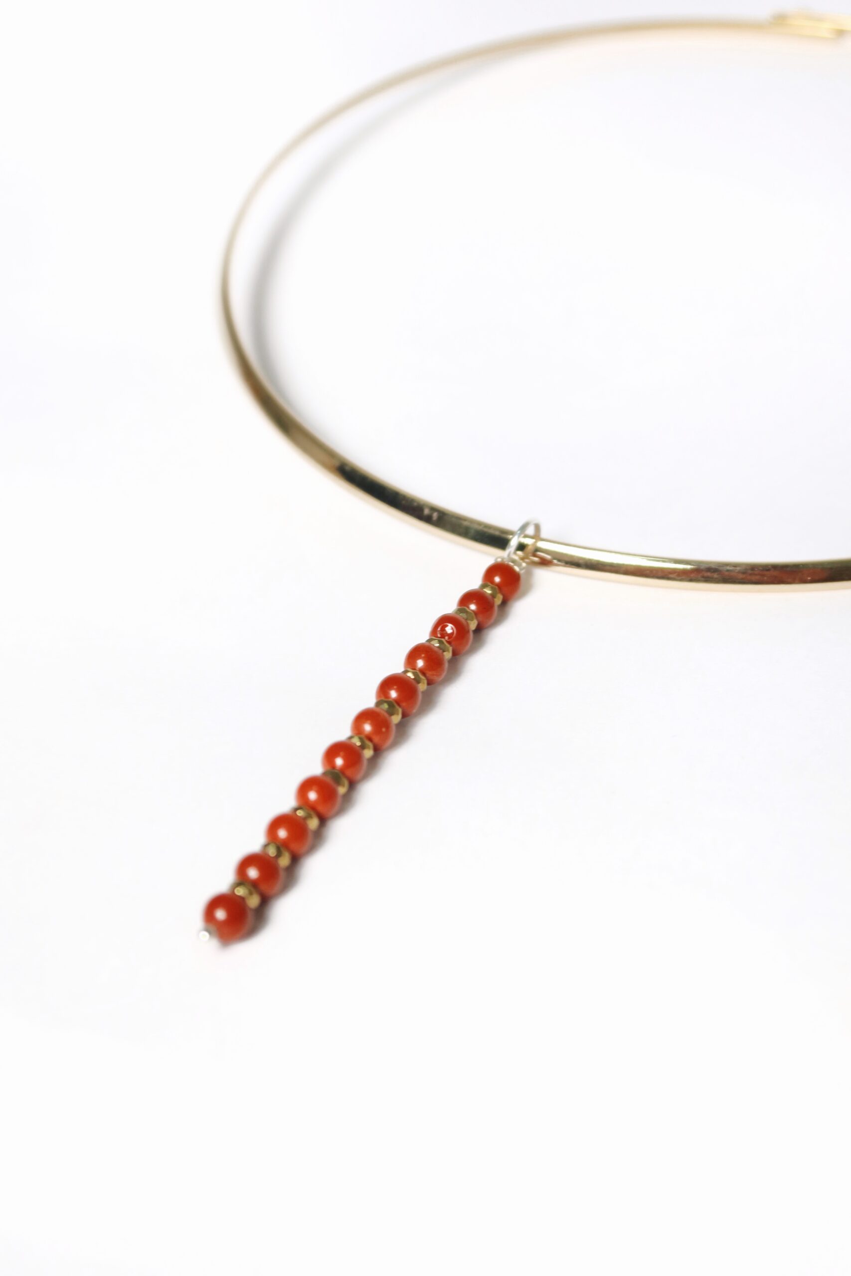 O pingente longo MB Jaspe Vermelho é vibrante e cheio de energia e destaca o Jaspe Vermelho, pedra de vitalidade, ação e força interna, na atmosfera quente da Menina Baiana.